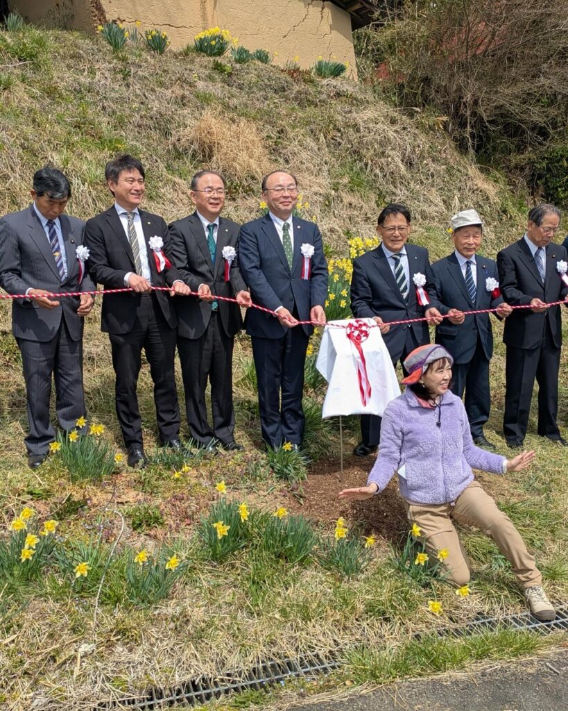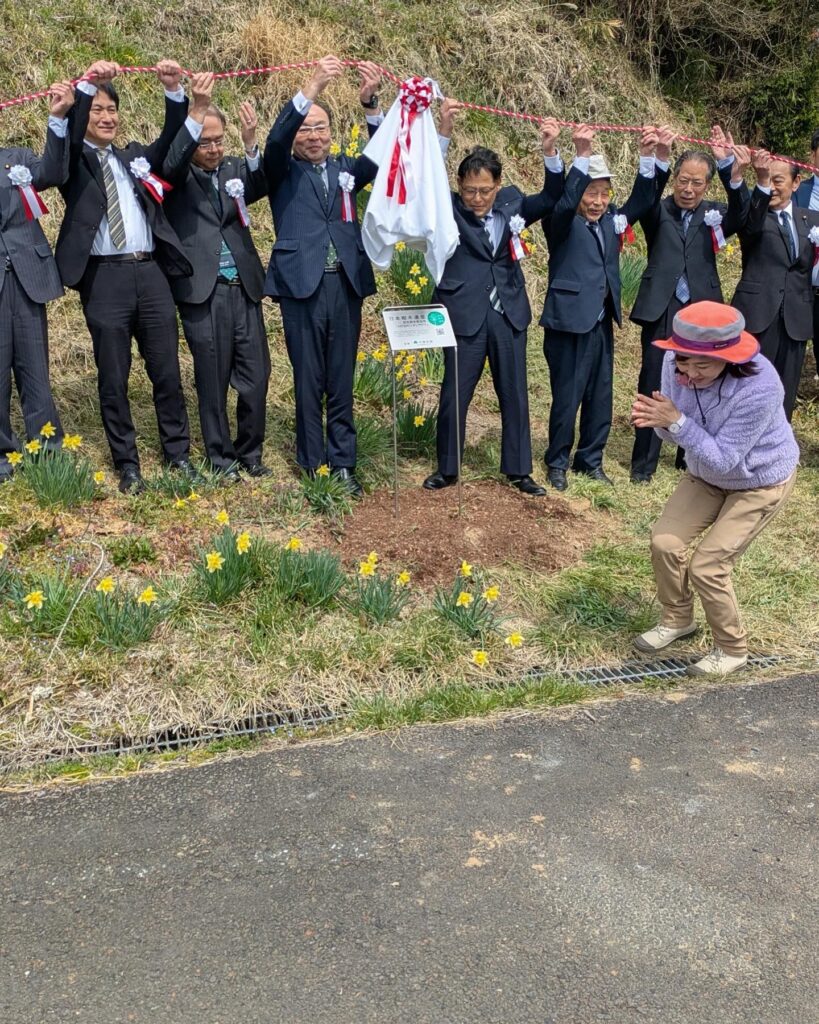 シダレサクラはまだ開花しておらずつぼみがほんのりピンクに色づいていて、翌週が見ごろになるようでした。お天気が心配されましたが降雨は無く、無事に皆様よりご挨拶いただき除幕も賑やかに行えました。