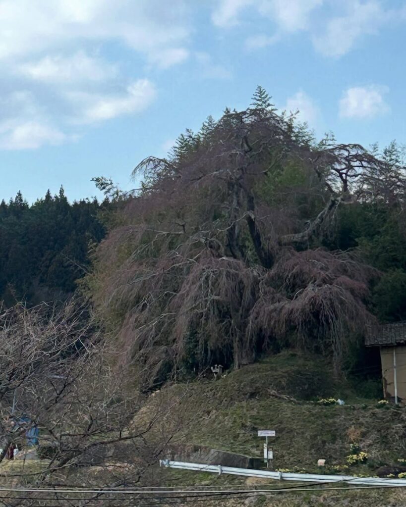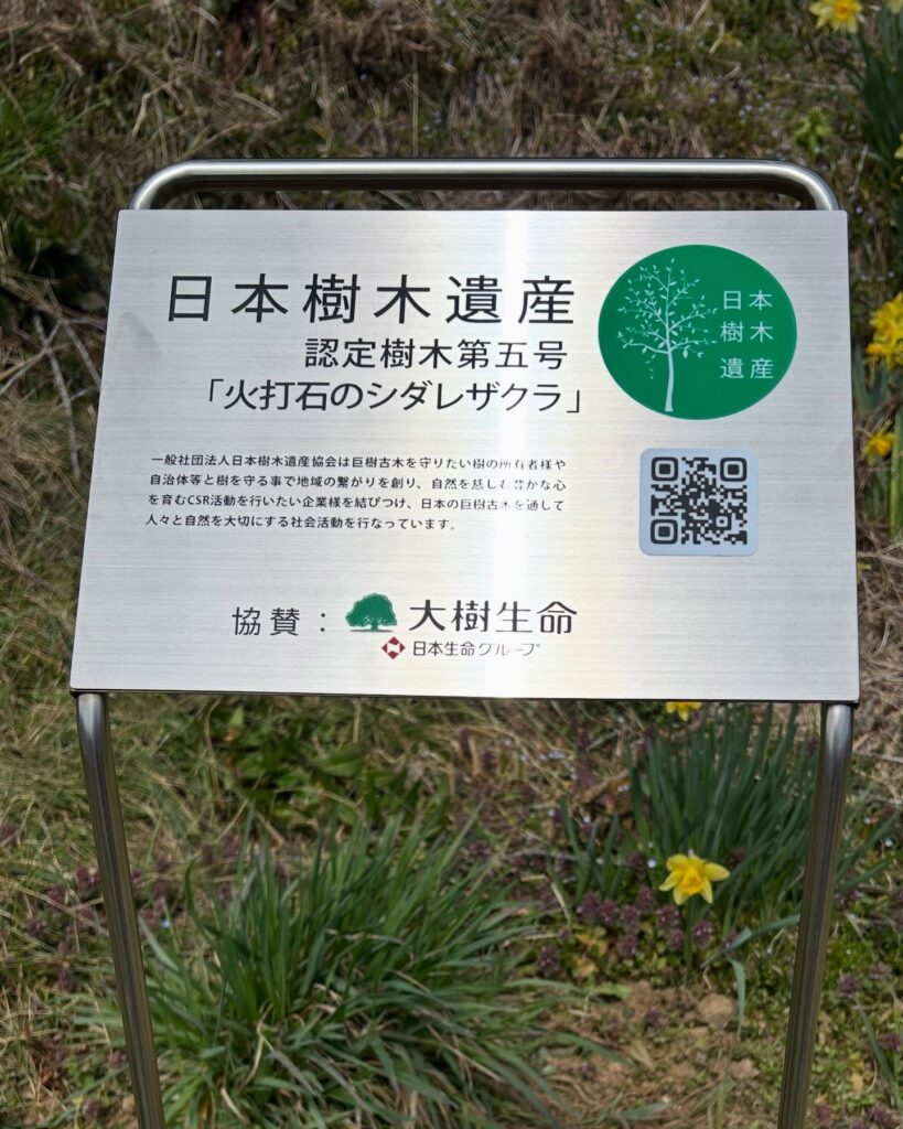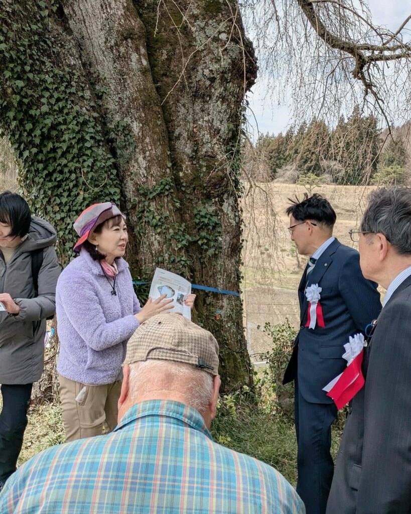 令和7年4月6日福島県鮫川村火打地区にて、樹齢400年の火打石のシダレザクラの日本樹木遺産第五号の認定除幕式及び公開診断が行われました。