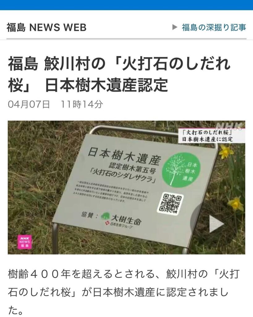 令和7年4月6日福島県鮫川村火打地区にて、樹齢400年の火打石のシダレ 続きを読む…